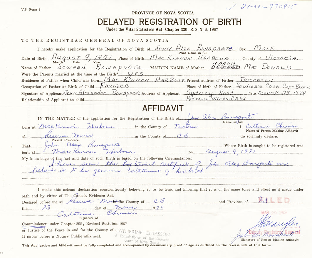 2. FULL NAME OF CHILD Bonaparte, John Alex
