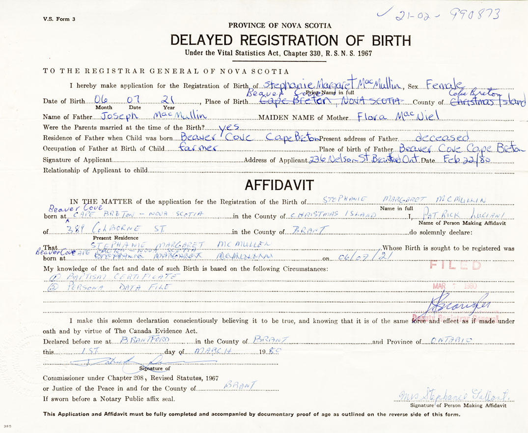 2. FULL NAME OF CHILD MacMullin, Stephanie Margaret