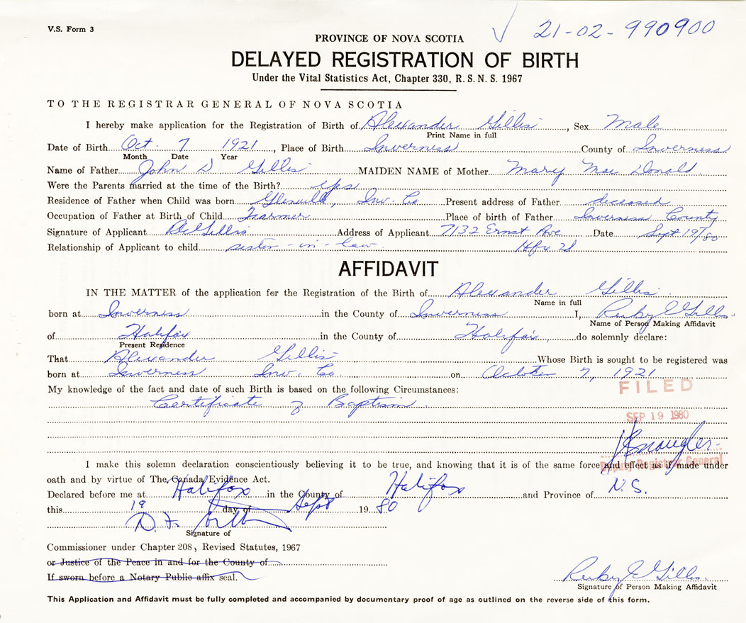 born at Inverness Inverness County on October 7, 1921