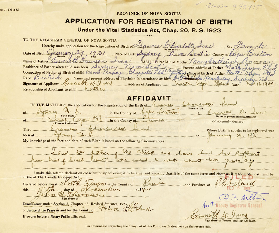 Signature of Applicant Everett D. Ives Address of Applicant North Tryon, Prince Edward Island Date November 16, 1940