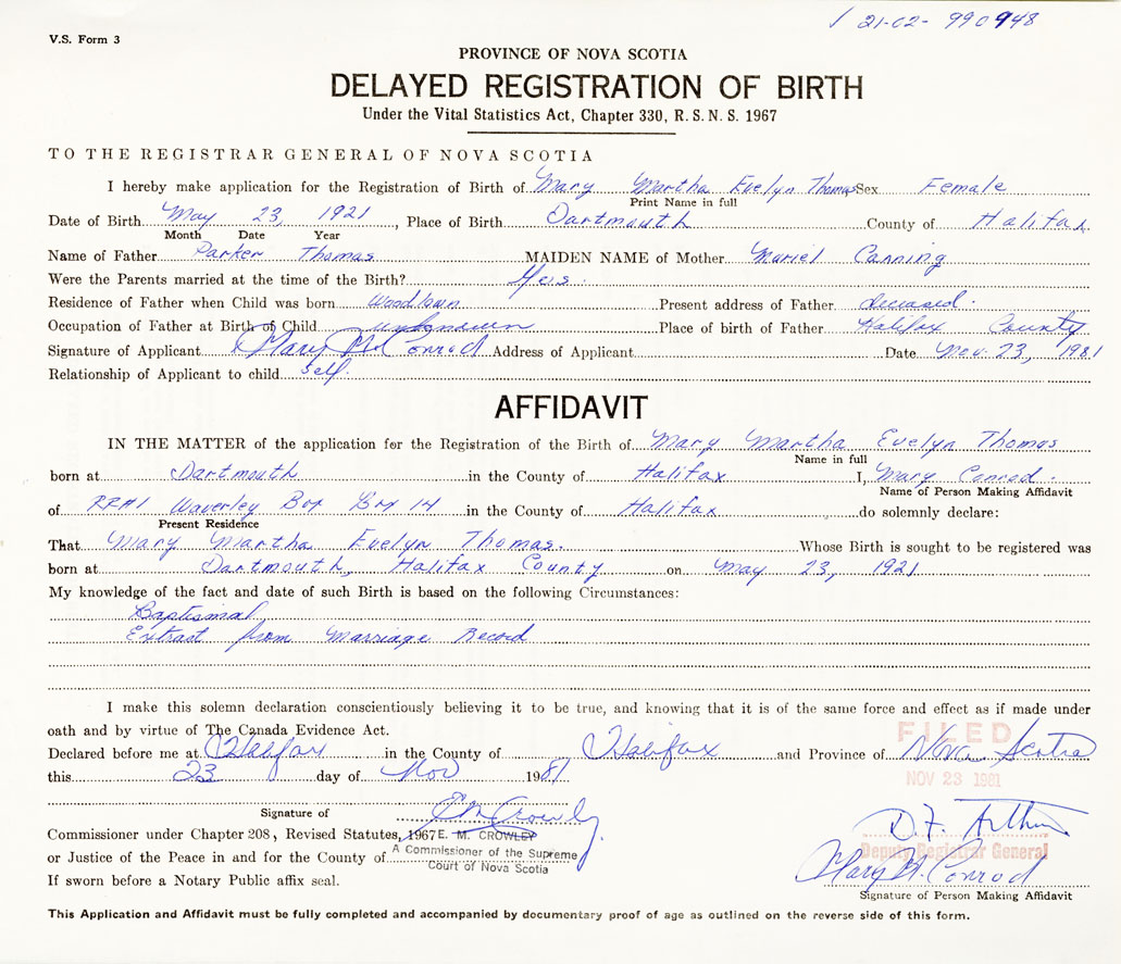 Date of Birth May 23, 1921 Place of Birth DartmouthCounty of Halifax