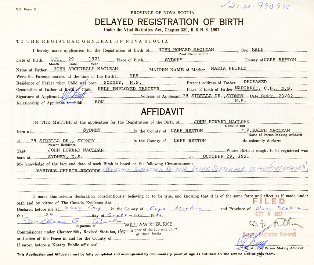 That John HowardMacLean Whose Birth is sought to be registered was
