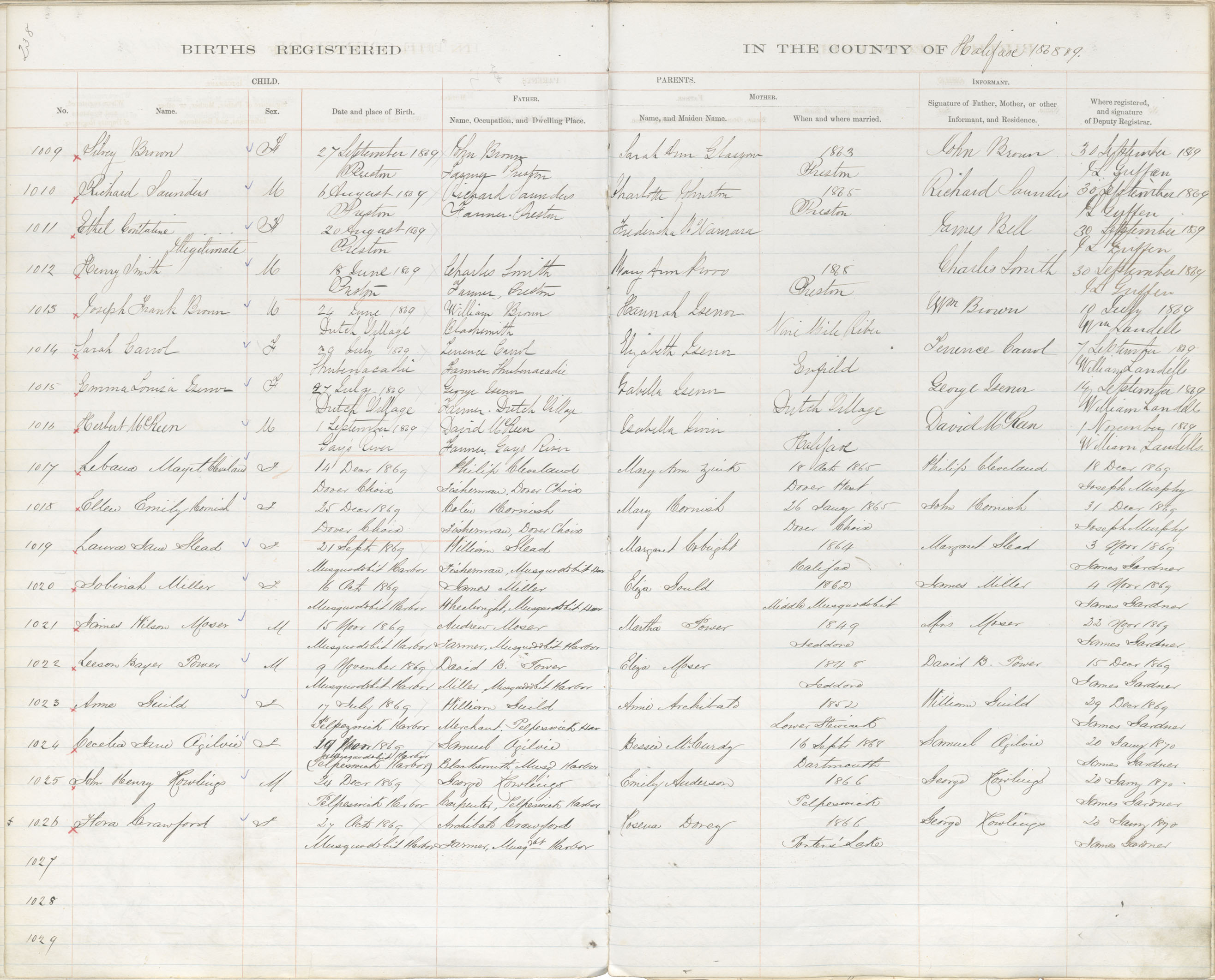 Birth Registration: Year: 1869 book: 1809 page: 238 number: 1026