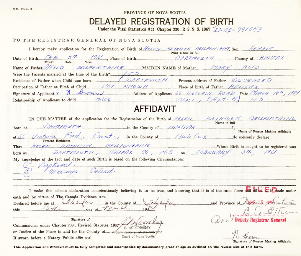 Date of Birth February 5, 1921 Place of Birth DartmouthCounty of Halifax