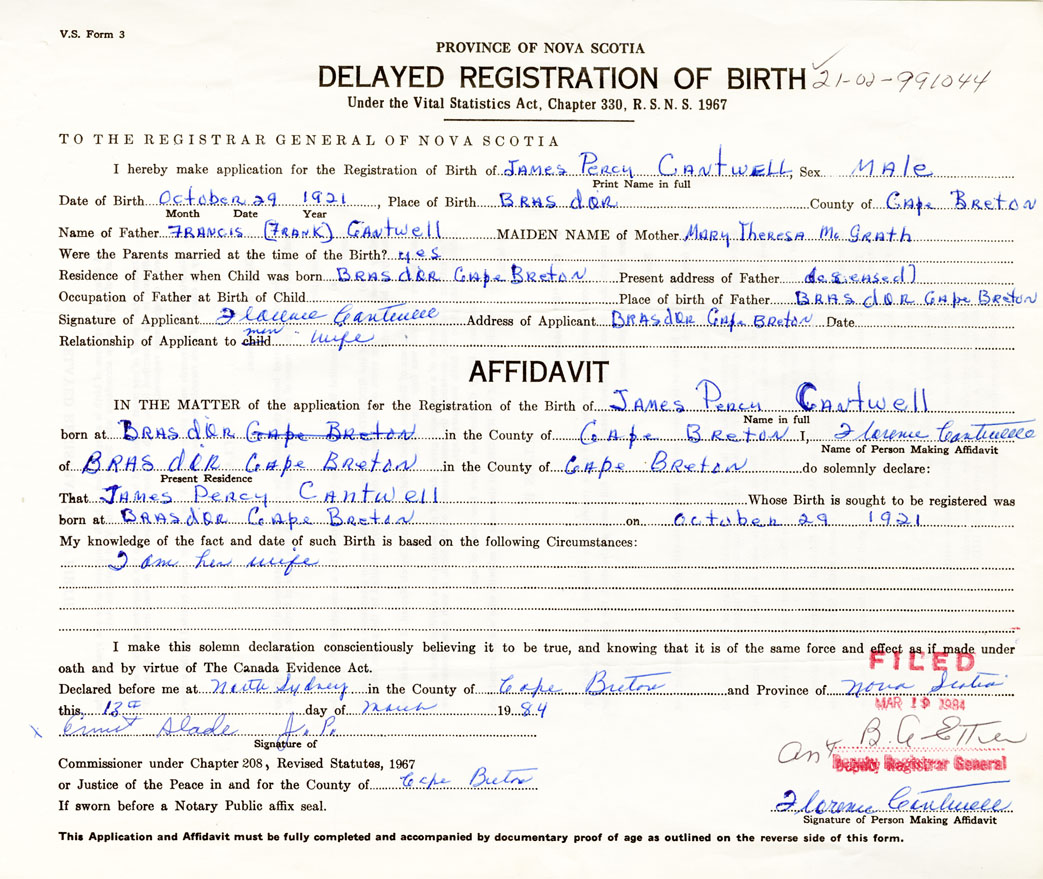 Date of Birth October 29, 1921 Place of Birth Bras d'OrCounty of Cape Breton