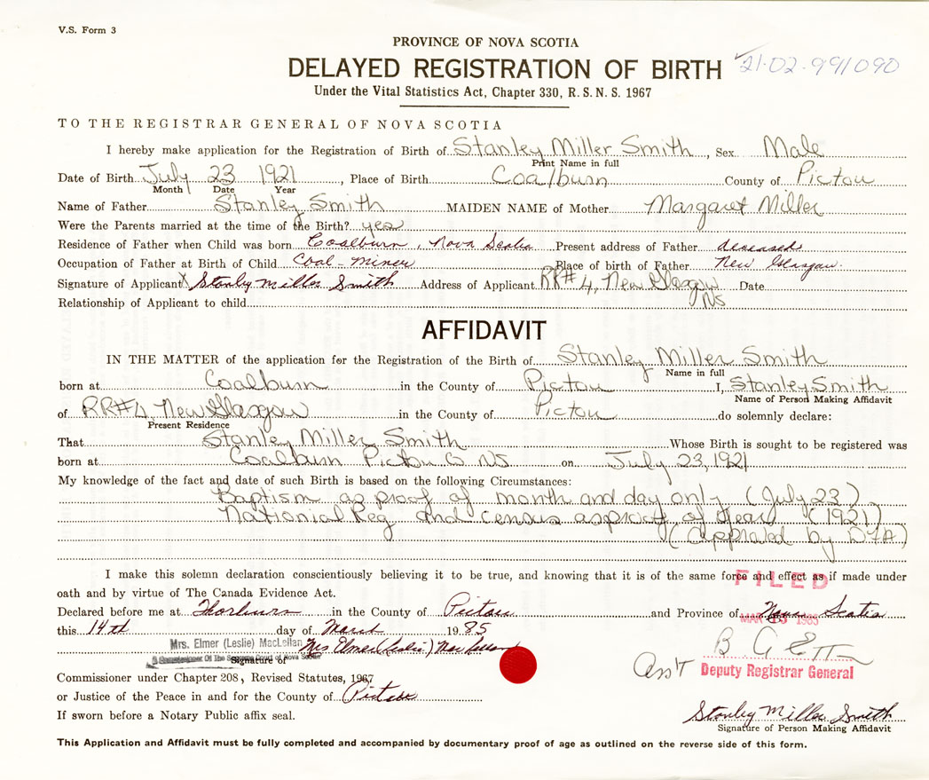 21. Name and Post Office address of Informant Stanley Miller Smith RR4 New Glasgow
