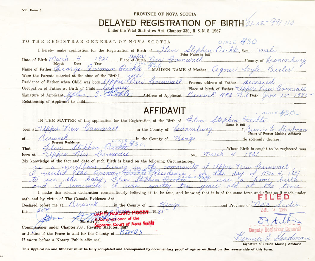 2. FULL NAME OF CHILD Oikle, Glen Stephen