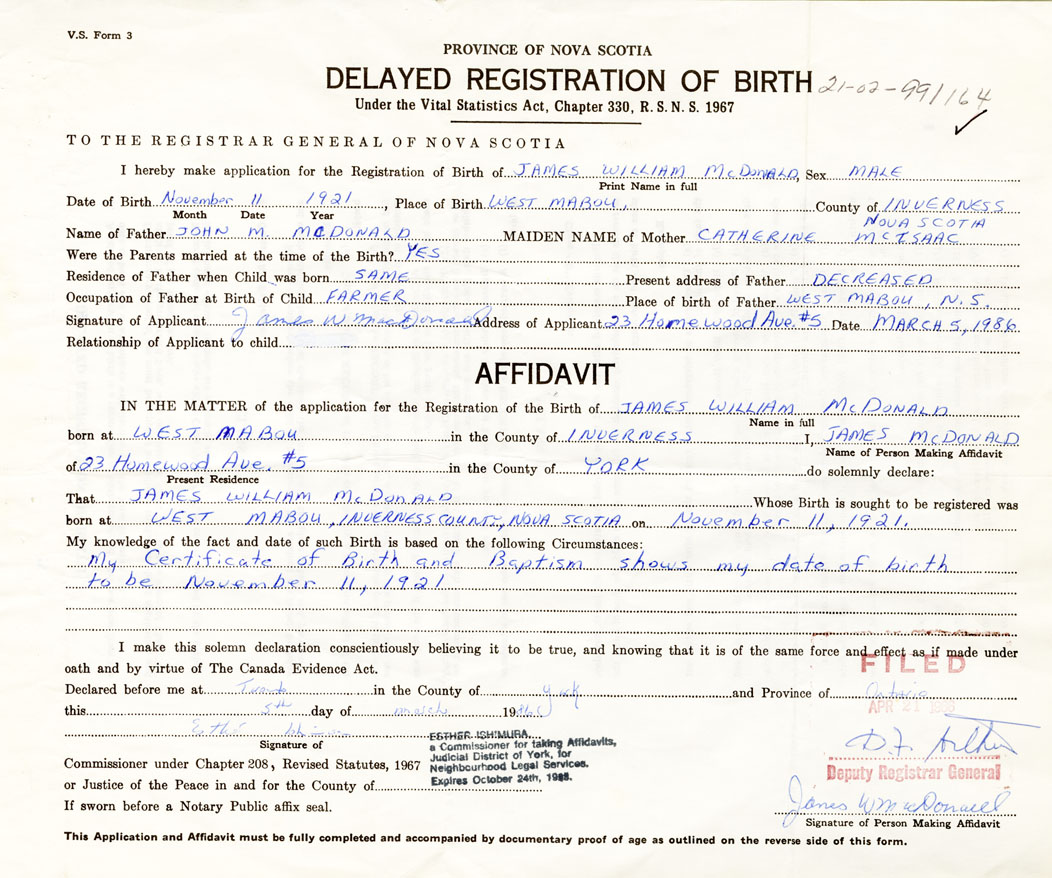 21. Name and Post Office address of Informant James William McDonald 23 Homewood Ave. York