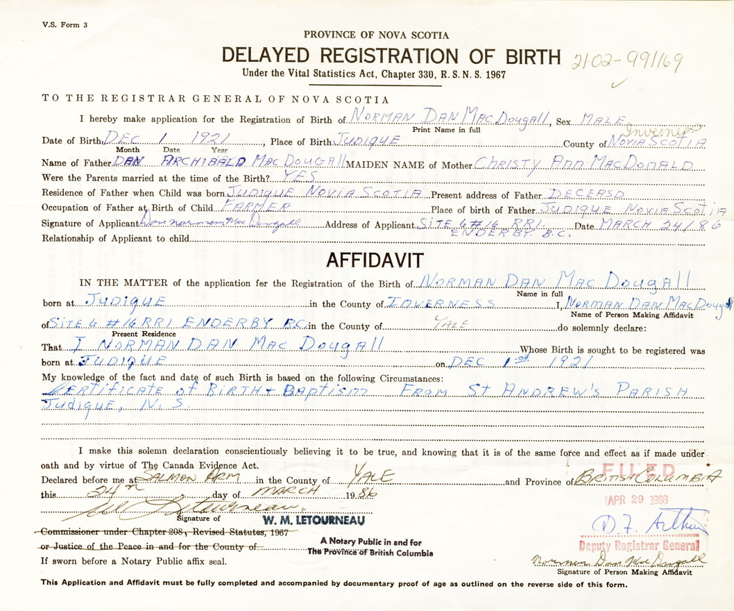 2. FULL NAME OF CHILD MacDougall, Norman Dan