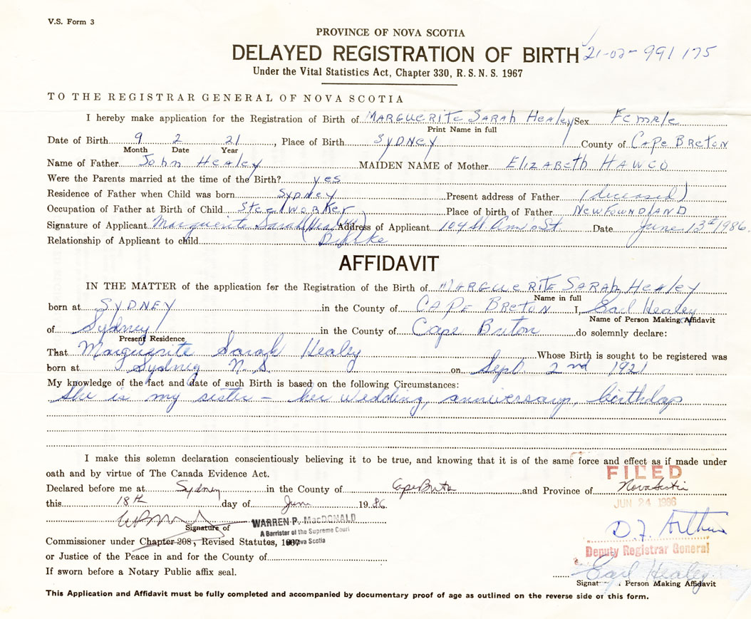 2. FULL NAME OF CHILD Healey, Marguerite Sarah