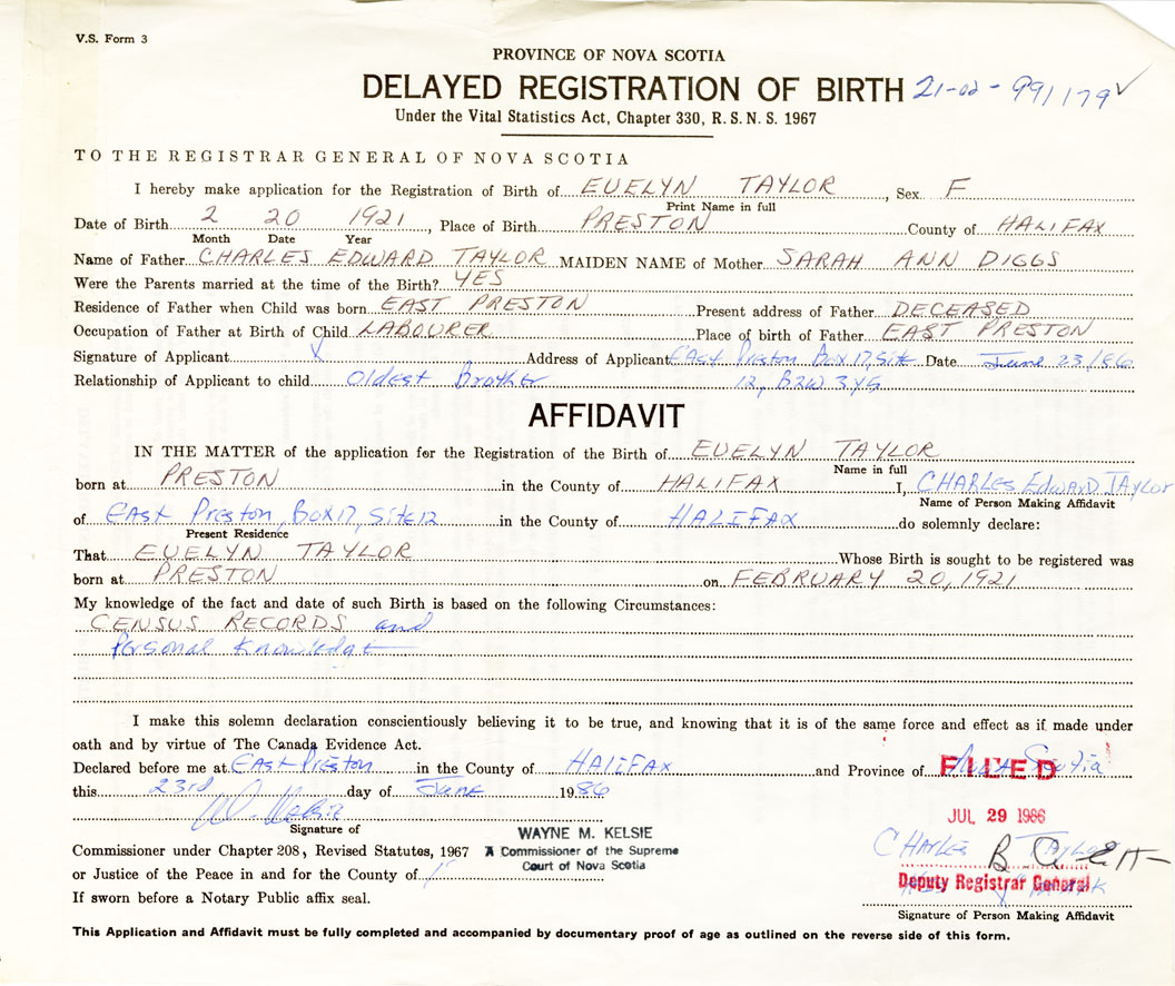 Date of Birth February 20, 1921 Place of Birth PrestonCounty of Halifax