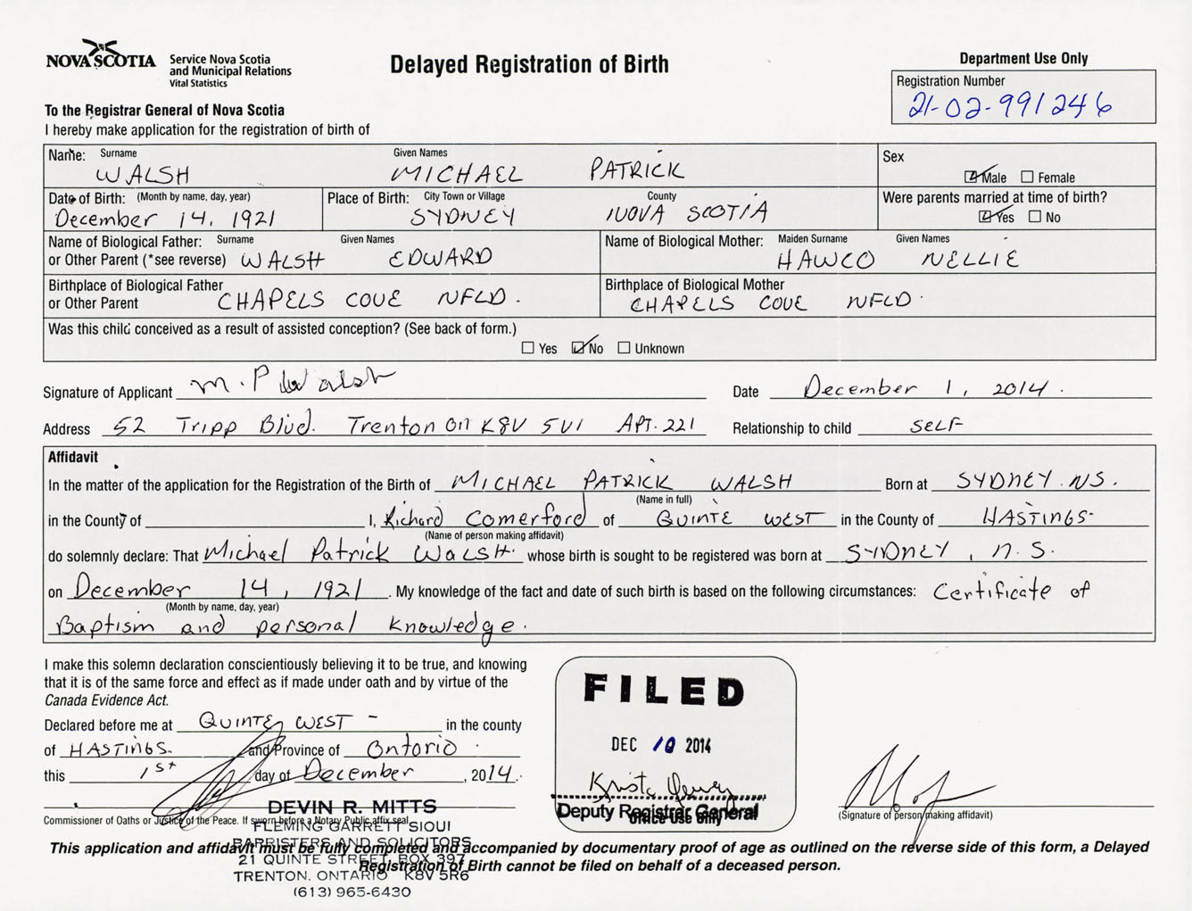 21. Name and Post Office address of Informant M.P. Walsh Apt 221, 52 Tripp Boulevard, Trenton, Ontario, K8V 5V1