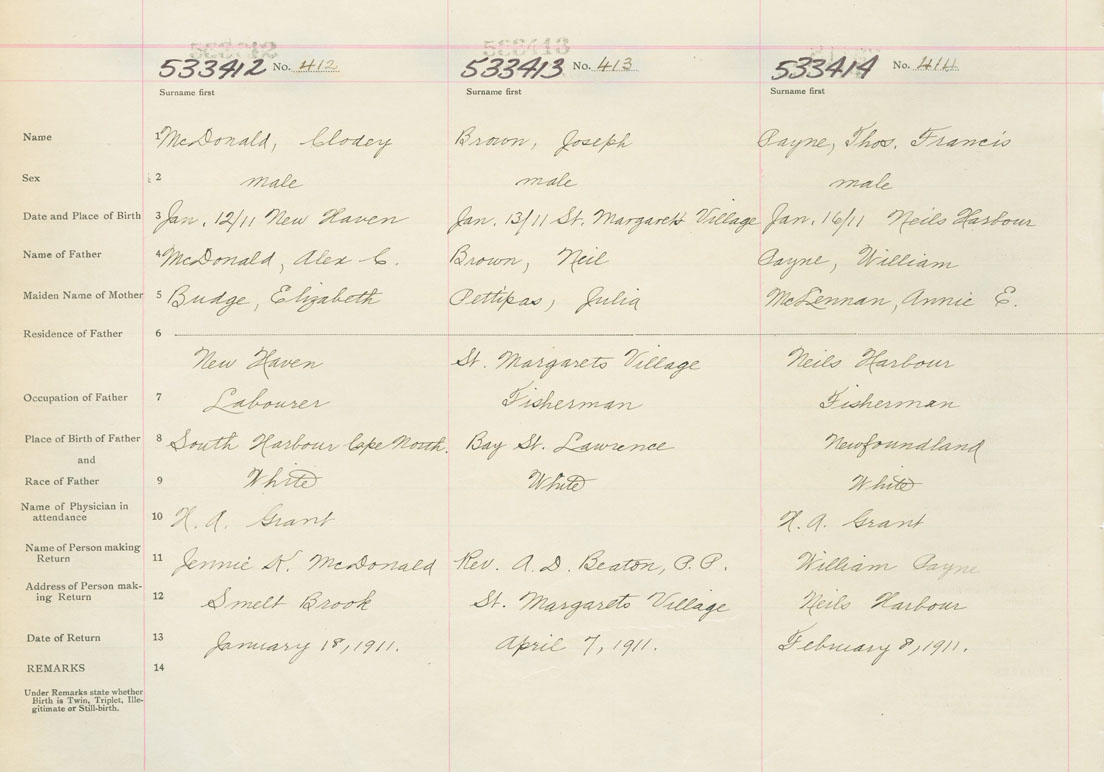 Male Birth Registration: Year: 1911 number: 53300412