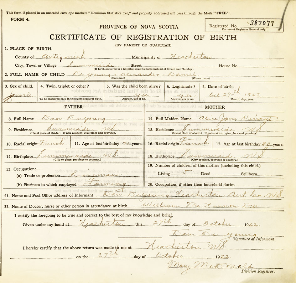 Nova Scotia Archives — https://archives.novascotia.ca/vital-statistics/birth/?ID=417941