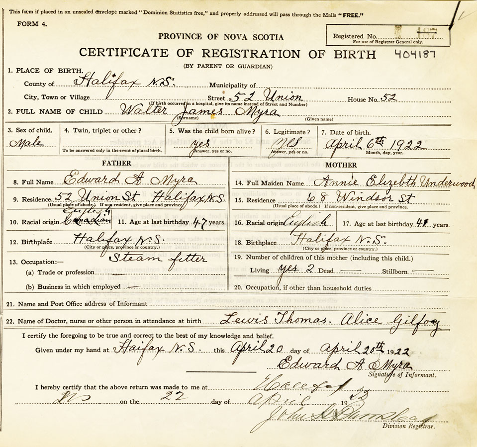 18. Birthplace Halifax, N. S