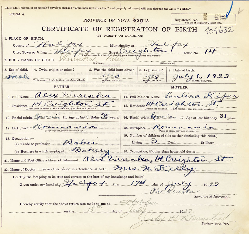 21. Name and Post Office address of Informant Alex Werenka 14 Creighton St.