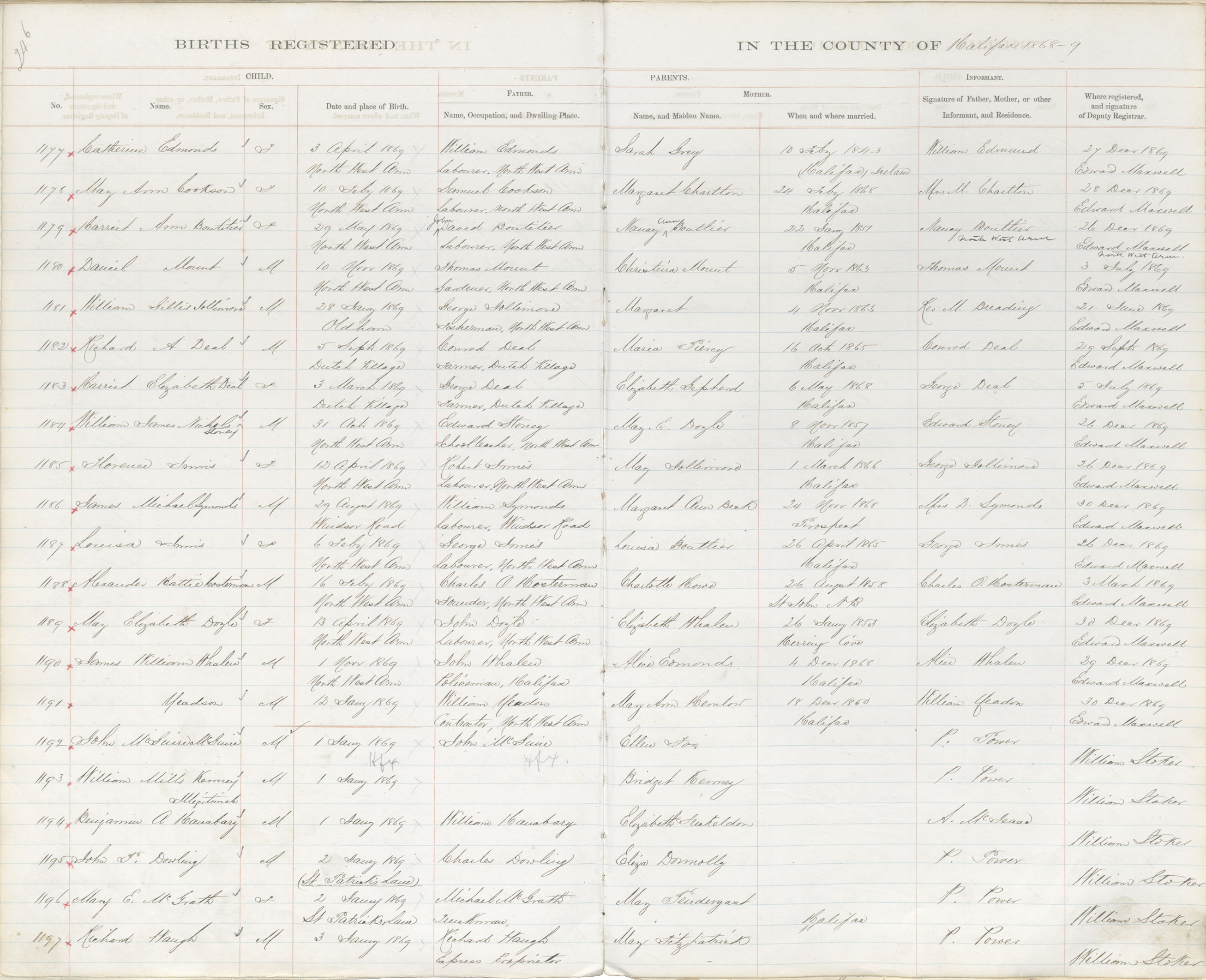 Birth Registration: Year: 1869 book: 1809 page: 246 number: 1197