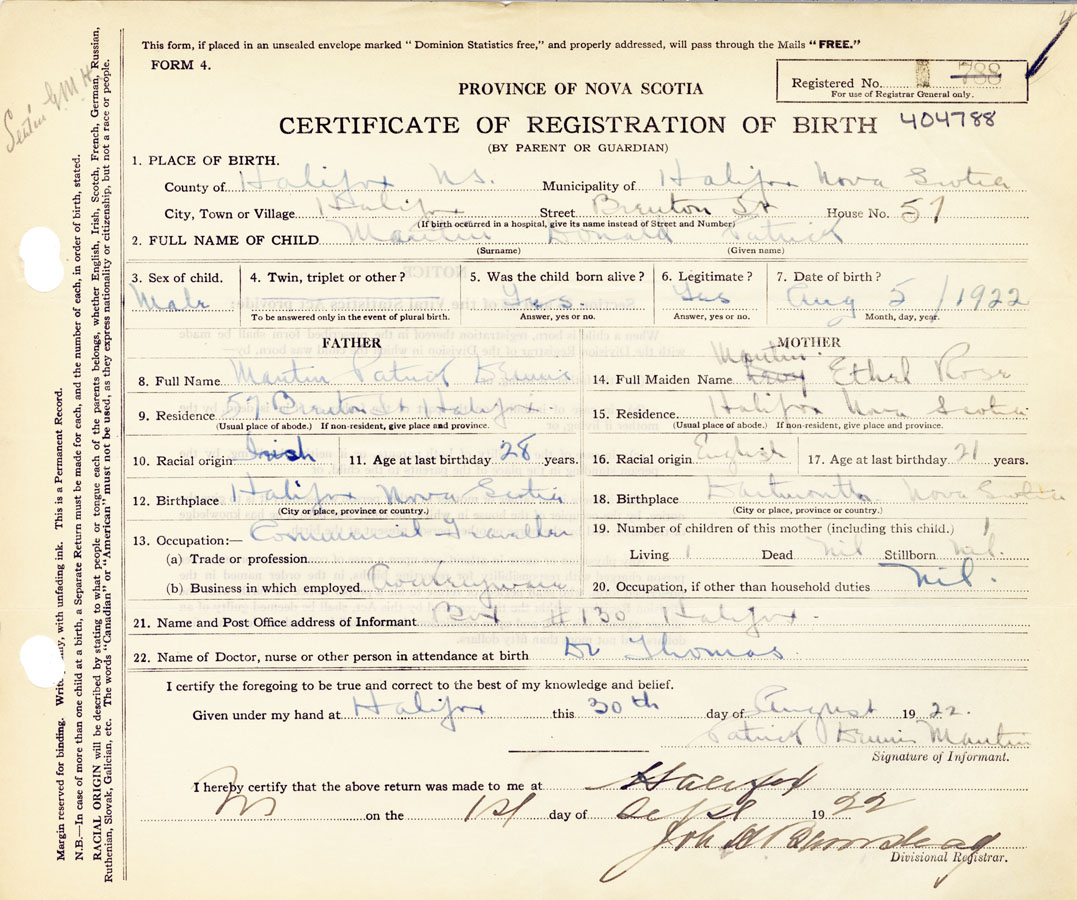 Nova Scotia Archives — https://archives.novascotia.ca/vital-statistics/birth/?ID=419166
