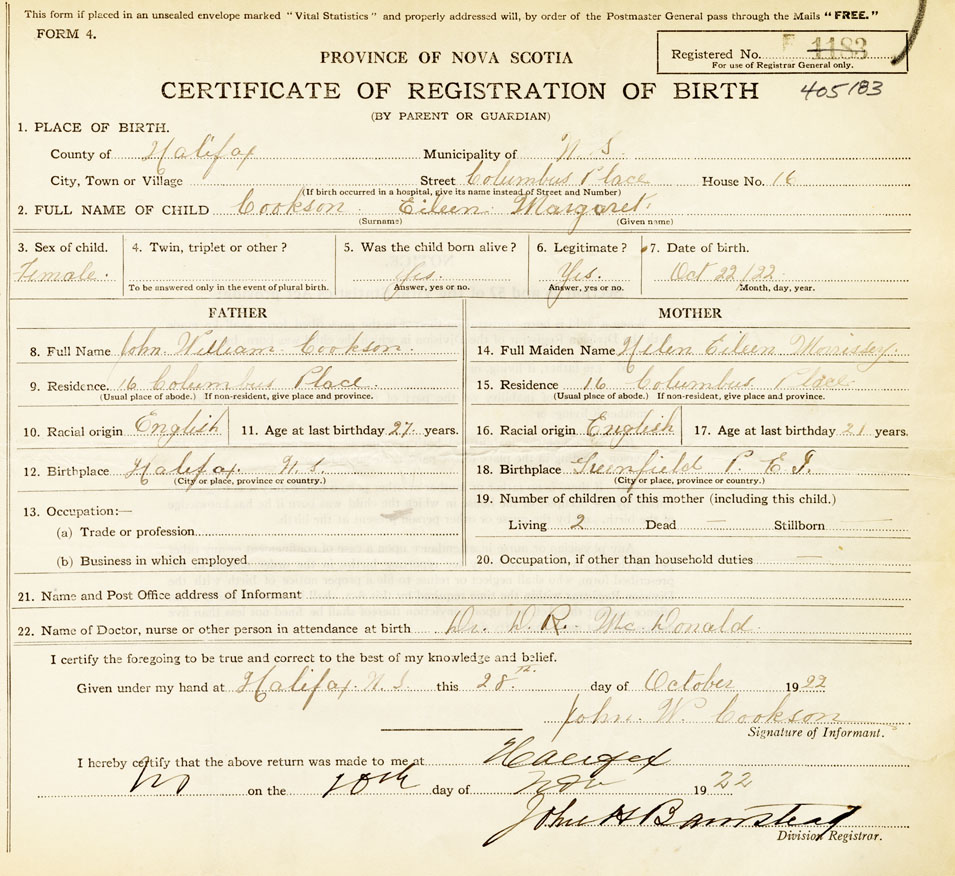 Nova Scotia Archives — https://archives.novascotia.ca/vital-statistics/birth/?ID=419563