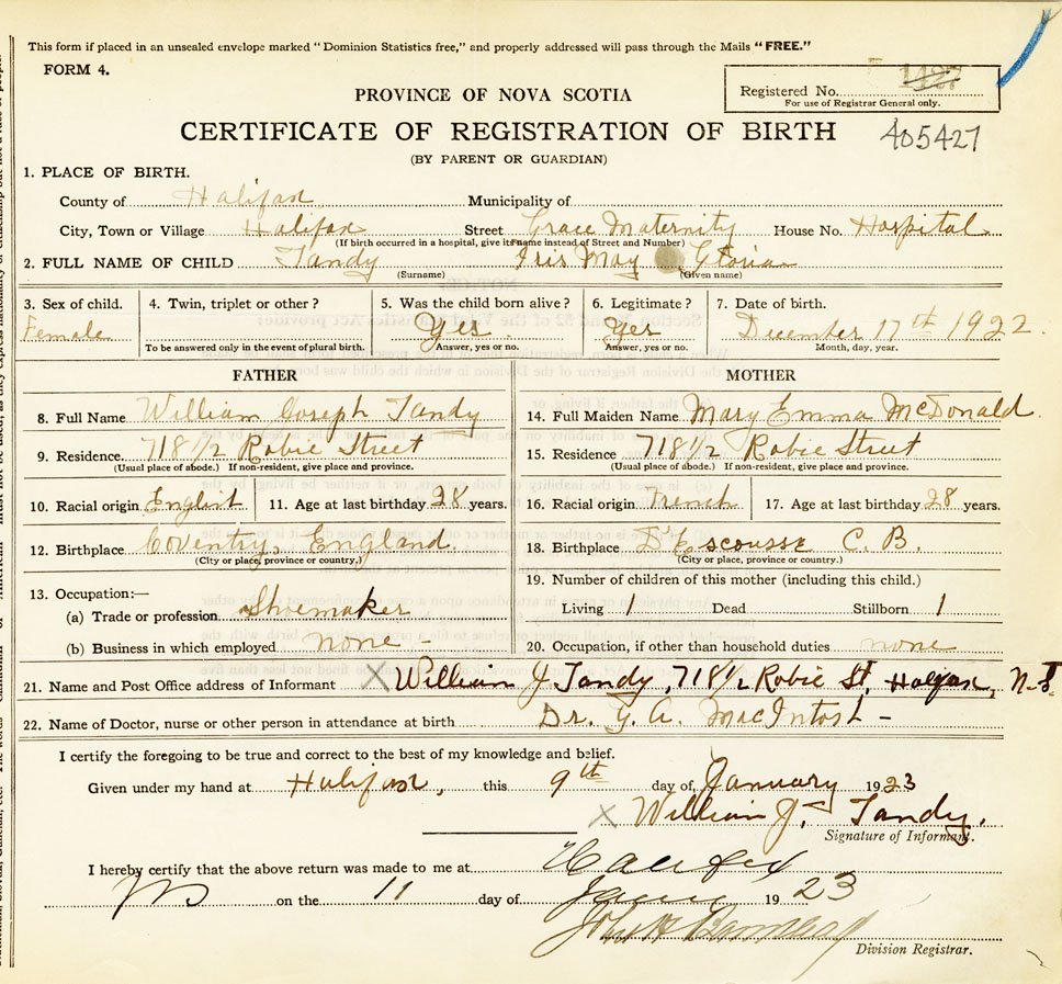 Nova Scotia Archives — https://archives.novascotia.ca/vital-statistics/birth/?ID=419807