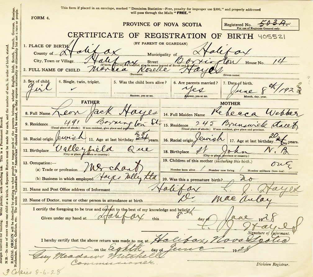 Nova Scotia Archives — https://archives.novascotia.ca/vital-statistics/birth/?ID=419901