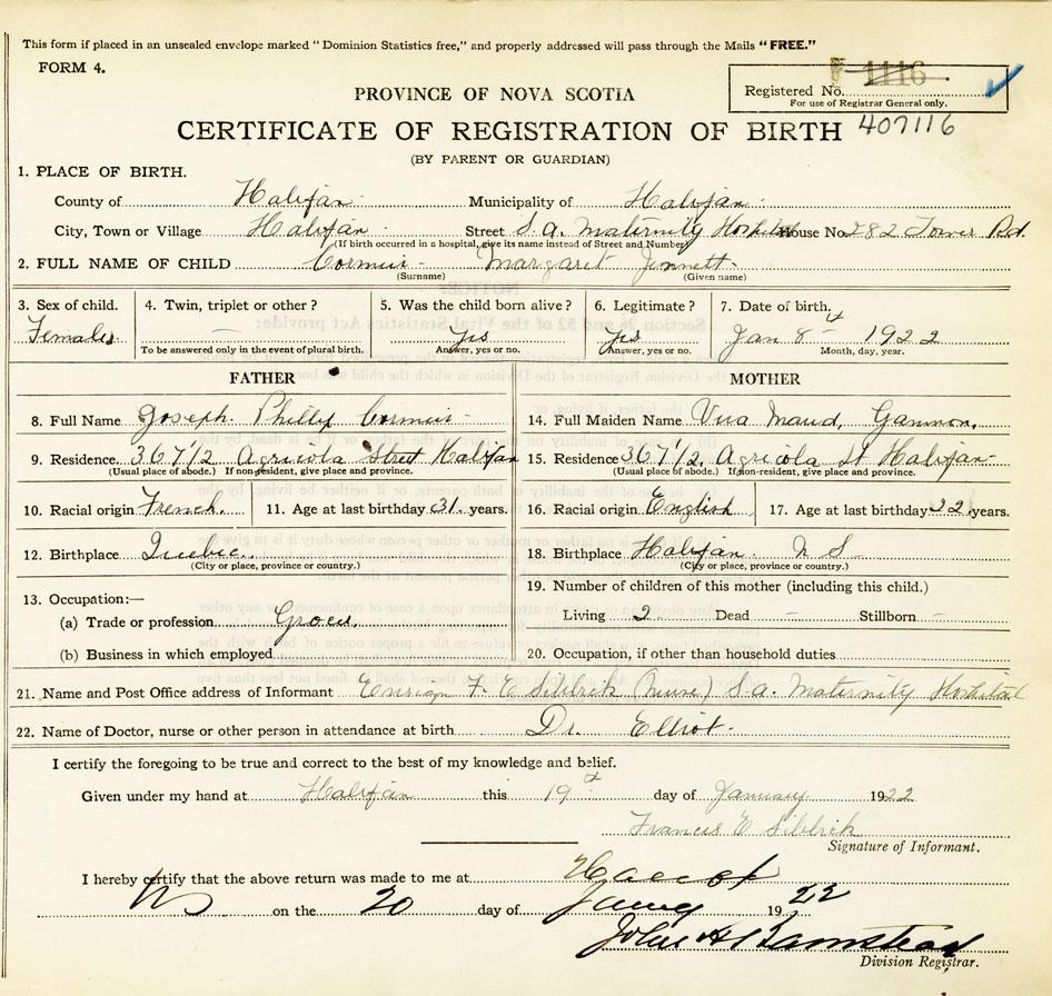 Nova Scotia Archives — https://archives.novascotia.ca/vital-statistics/birth/?ID=419954