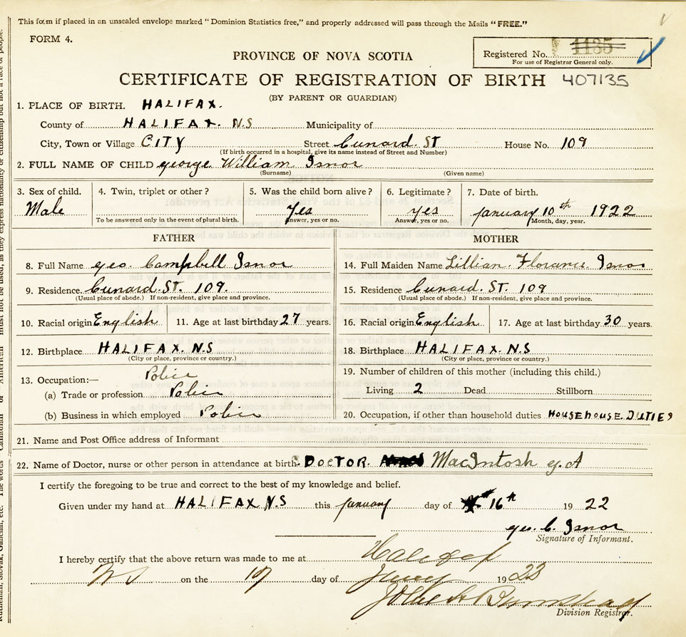 18. Birthplace Halifax. N.S.