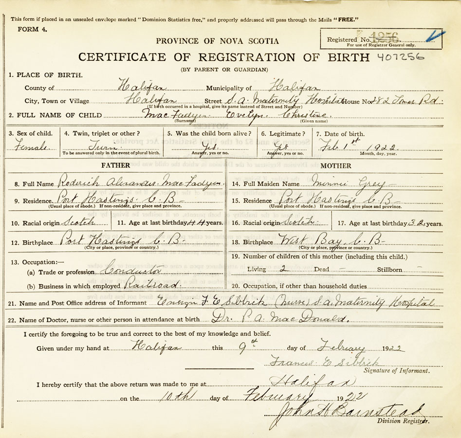 Nova Scotia Archives — https://archives.novascotia.ca/vital-statistics/birth/?ID=420091