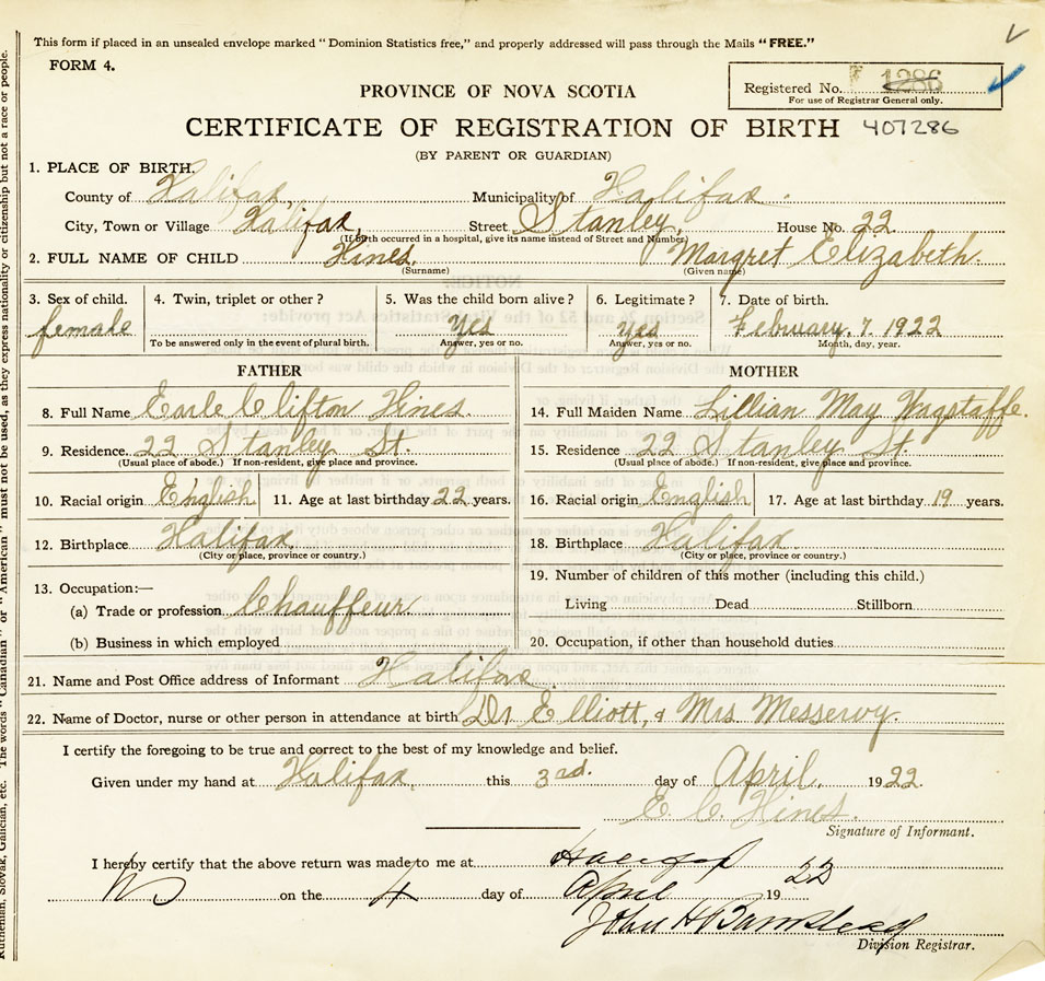 21. Name and Post Office address of Informant E. C. Hines 22 Stanley St., Halifax