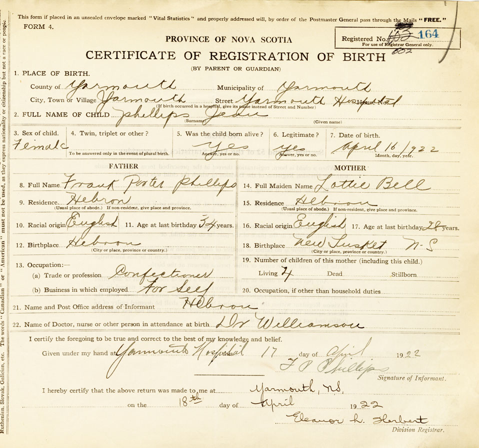 Nova Scotia Archives — https://archives.novascotia.ca/vital-statistics/birth/?ID=420388