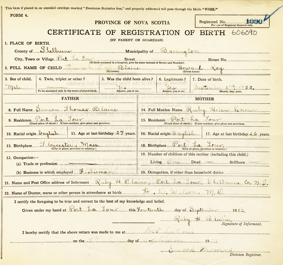 21. Name and Post Office address of Informant Ruby H. Blaine Port La Tour, Shelburne