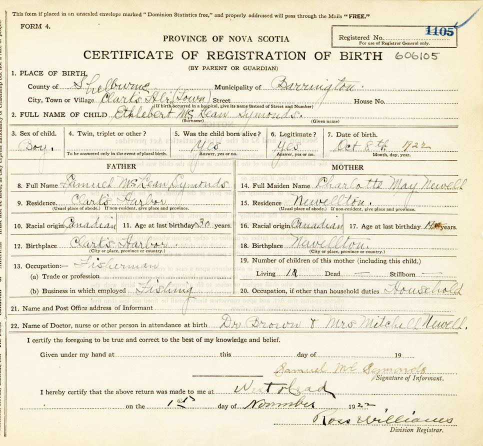 Nova Scotia Archives — https://archives.novascotia.ca/vital-statistics/birth/?ID=421079