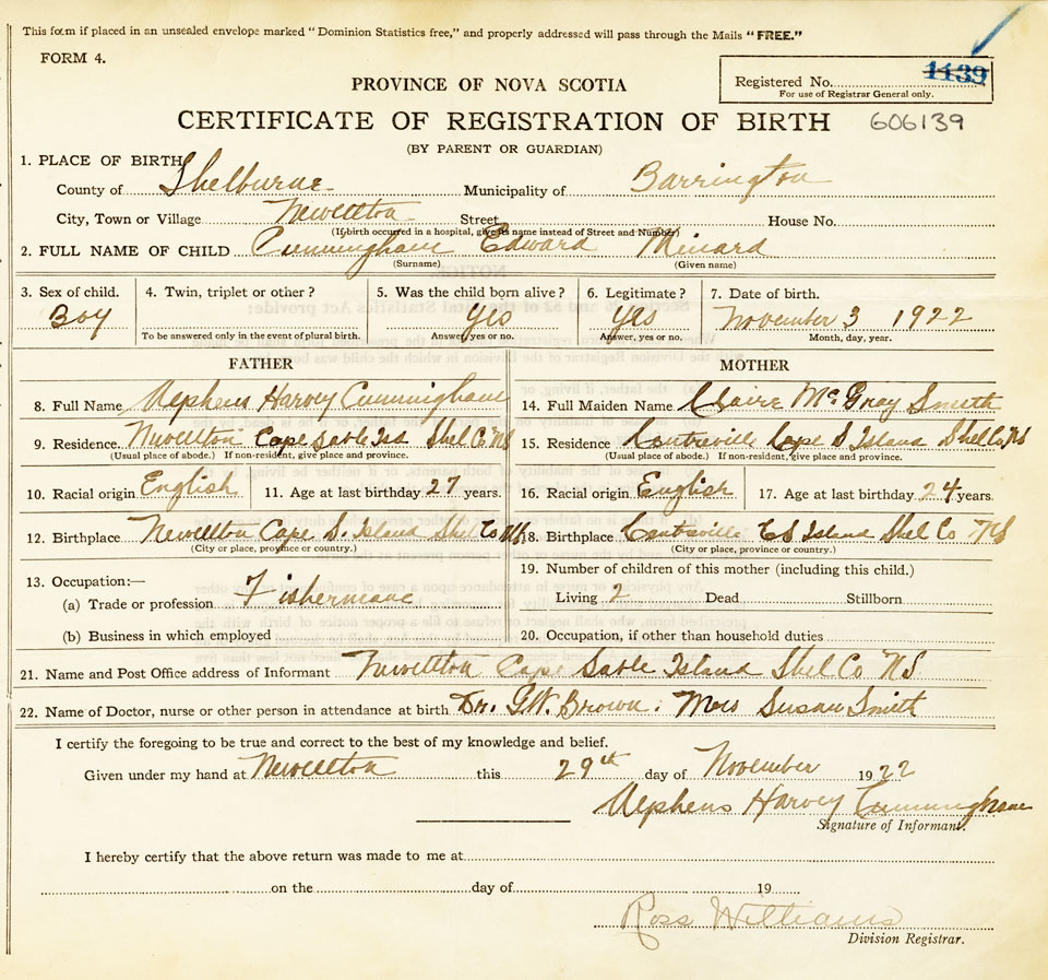 12. Birthplace Newelltown Cape Sable Island Shelb Co