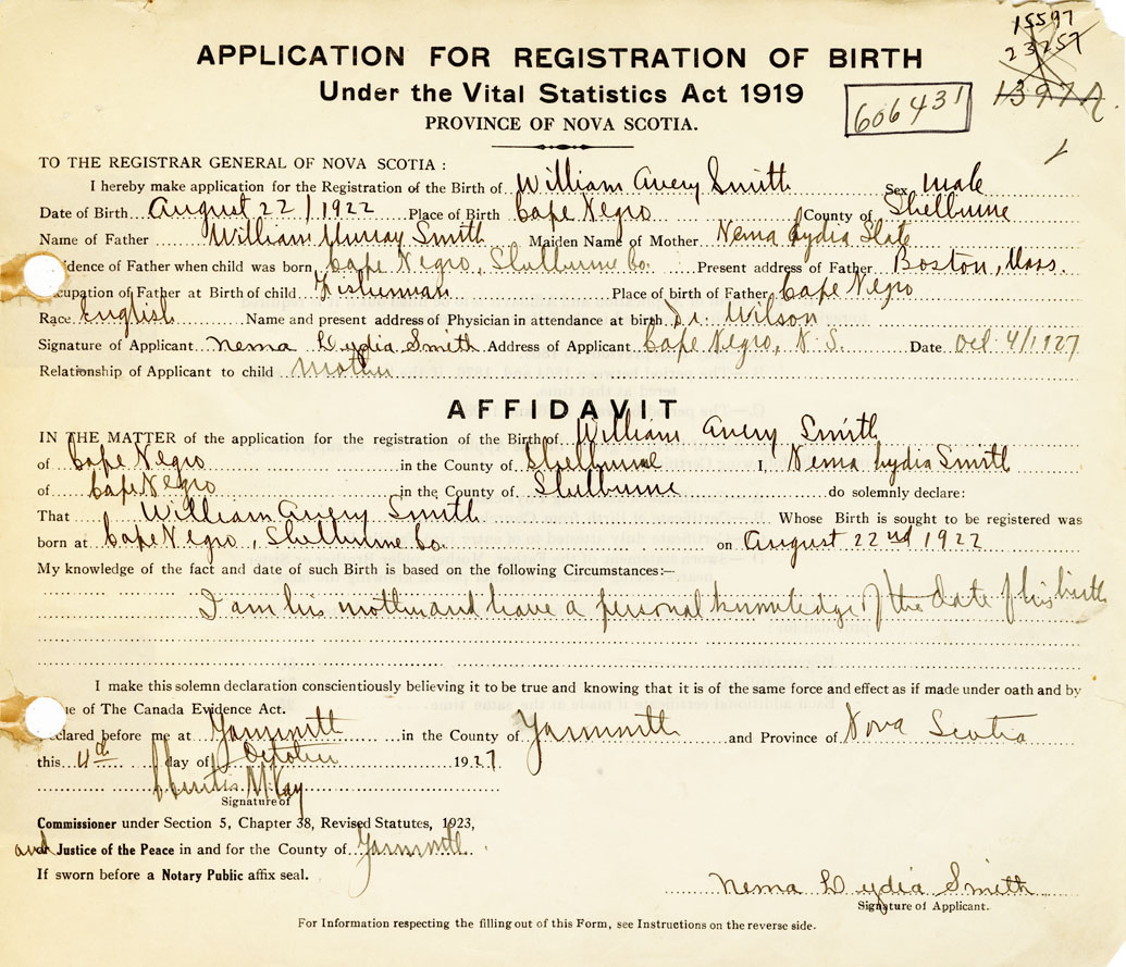 Date of Birth August 22, 1922 Place of Birth Cape NegroCounty of Shelburne
