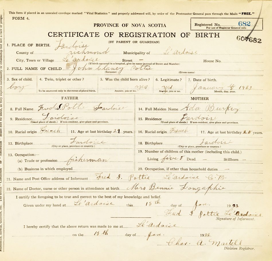 21. Name and Post Office address of Informant Fred J. Pottie L'Ardoise