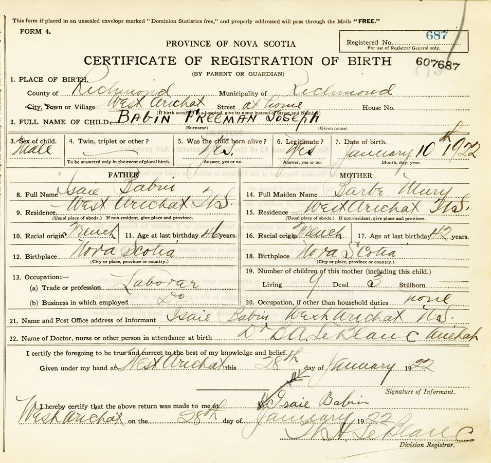 21. Name and Post Office address of Informant Isaie Babin West Arichat