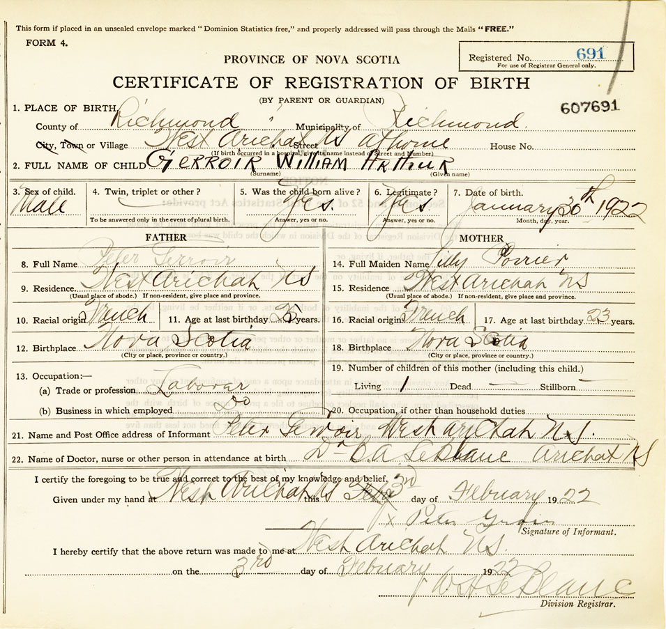 21. Name and Post Office address of Informant Peter Gerroir West Arichat