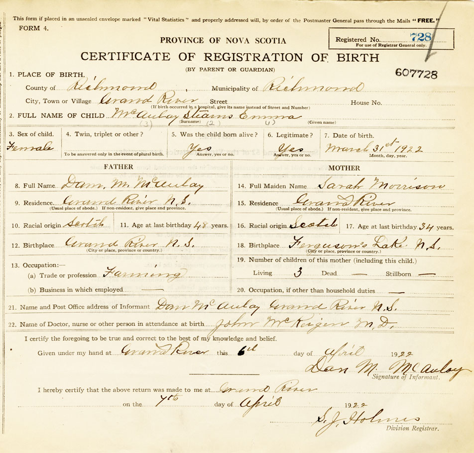 Nova Scotia Archives — https://archives.novascotia.ca/vital-statistics/birth/?ID=421215