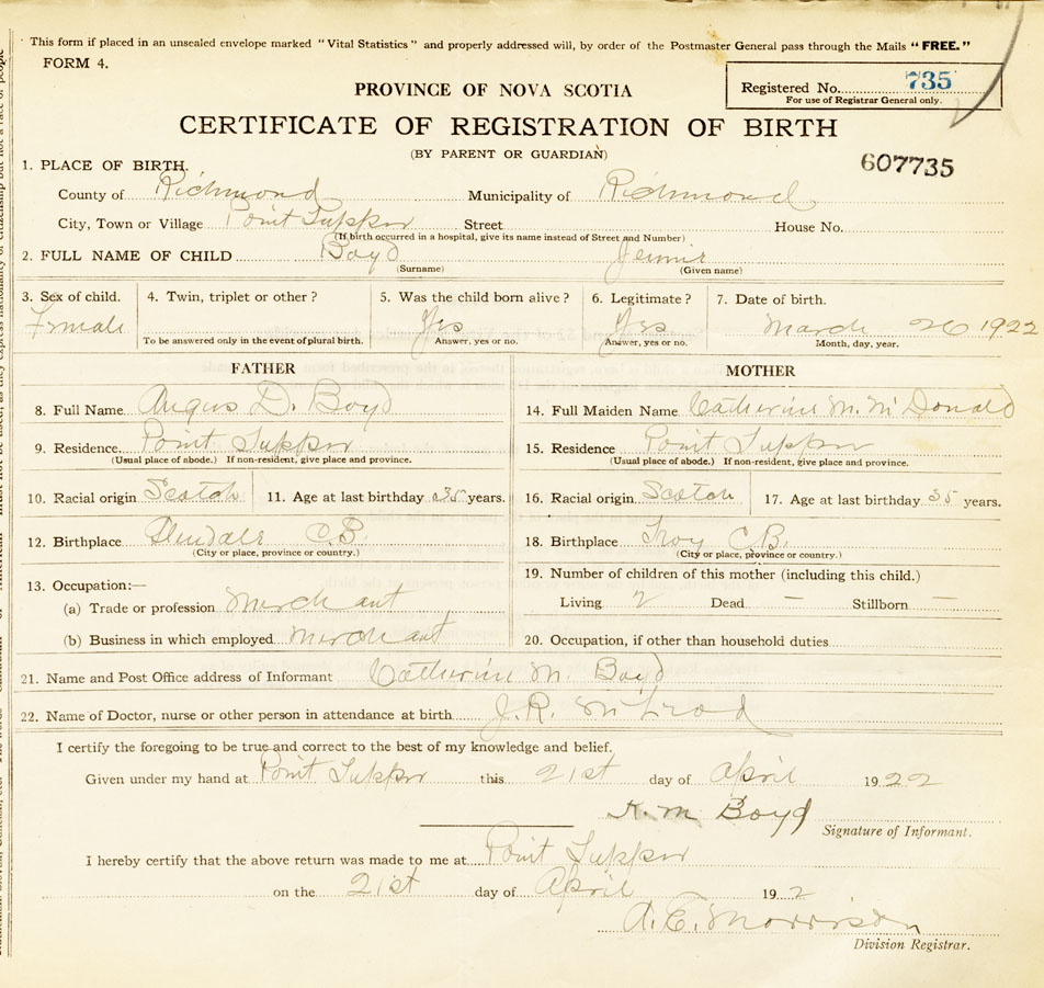 Nova Scotia Archives — https://archives.novascotia.ca/vital-statistics/birth/?ID=421222