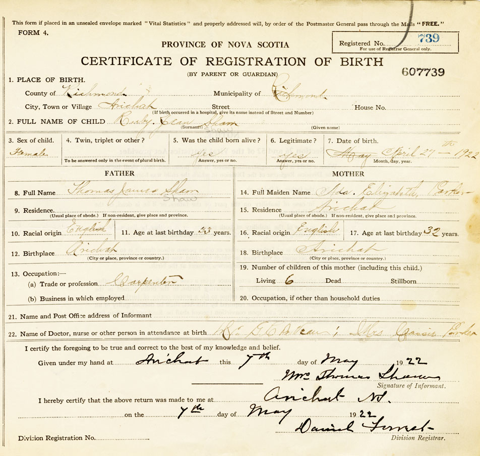 Nova Scotia Archives — https://archives.novascotia.ca/vital-statistics/birth/?ID=421226