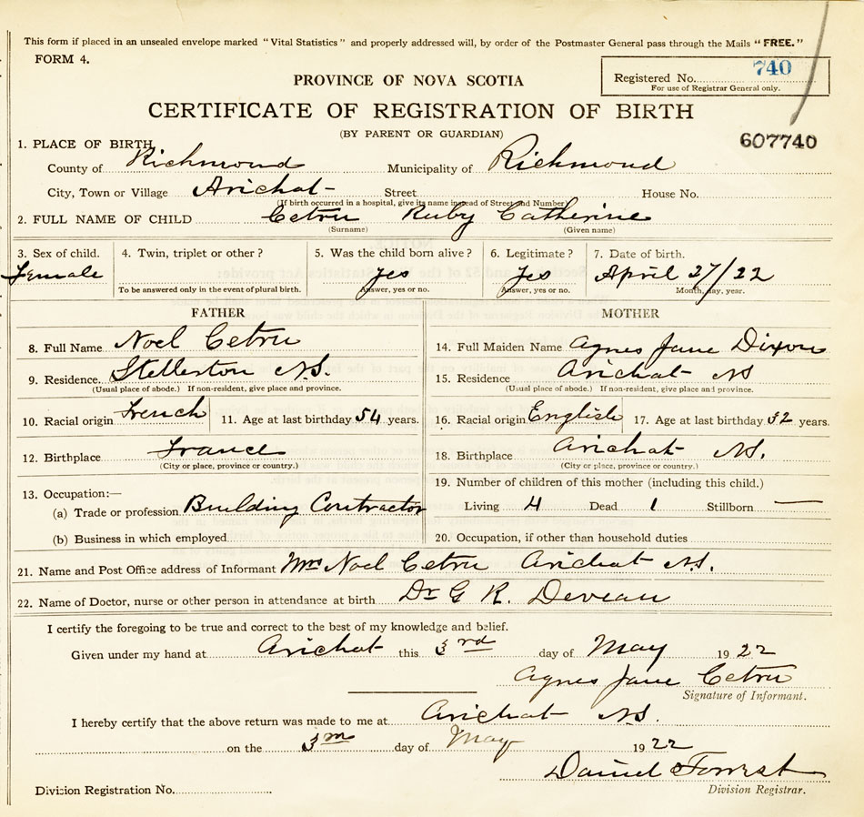 Nova Scotia Archives — https://archives.novascotia.ca/vital-statistics/birth/?ID=421227