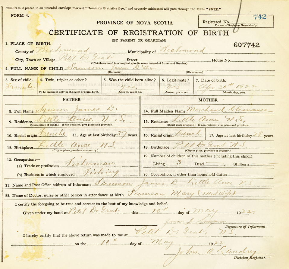 Nova Scotia Archives — https://archives.novascotia.ca/vital-statistics/birth/?ID=421229