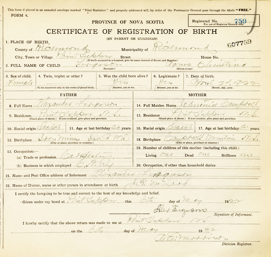 Nova Scotia Archives — https://archives.novascotia.ca/vital-statistics/birth/?ID=421246
