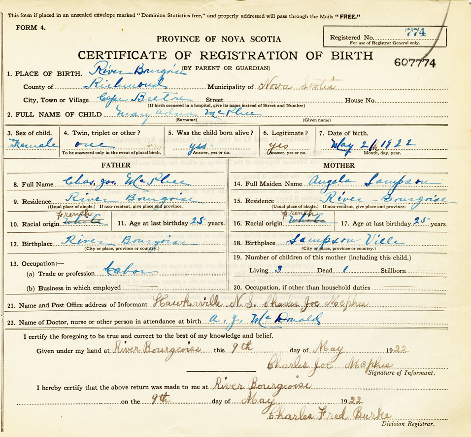 Nova Scotia Archives — https://archives.novascotia.ca/vital-statistics/birth/?ID=421261