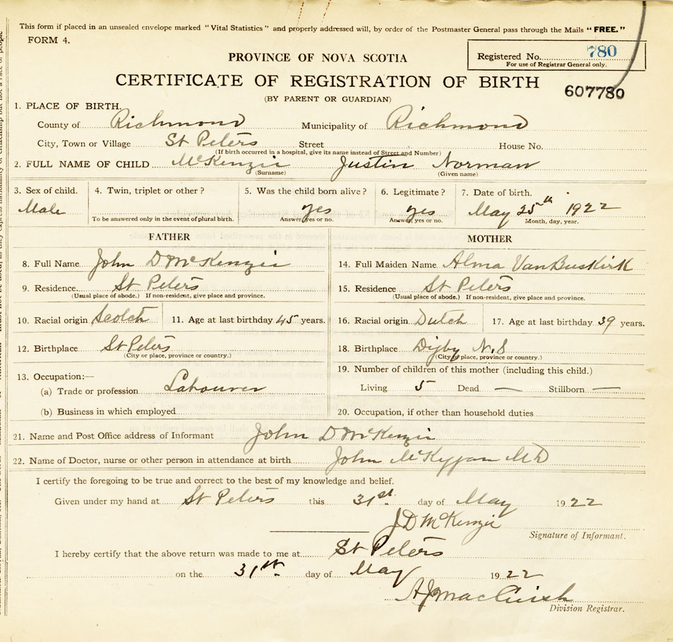 Nova Scotia Archives — https://archives.novascotia.ca/vital-statistics/birth/?ID=421267