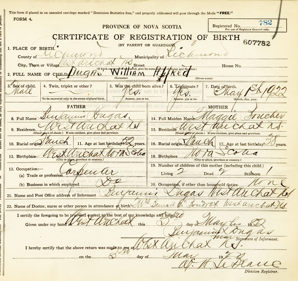 21. Name and Post Office address of Informant Benjamin Dugas West Arichat
