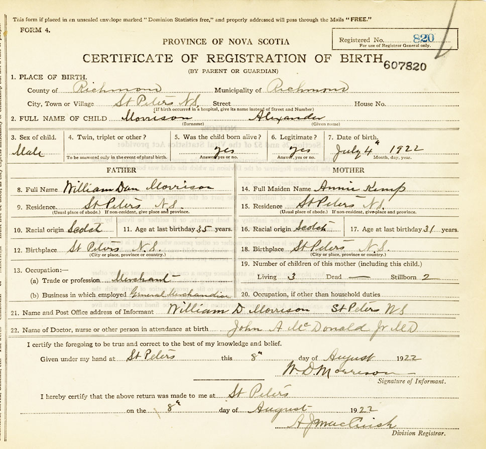 Nova Scotia Archives — https://archives.novascotia.ca/vital-statistics/birth/?ID=421307