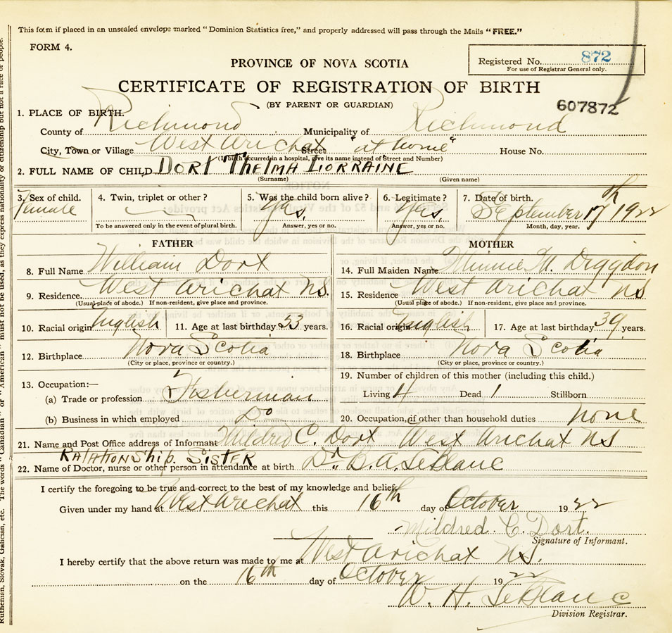 21. Name and Post Office address of Informant Mildred C Dort West Arichat