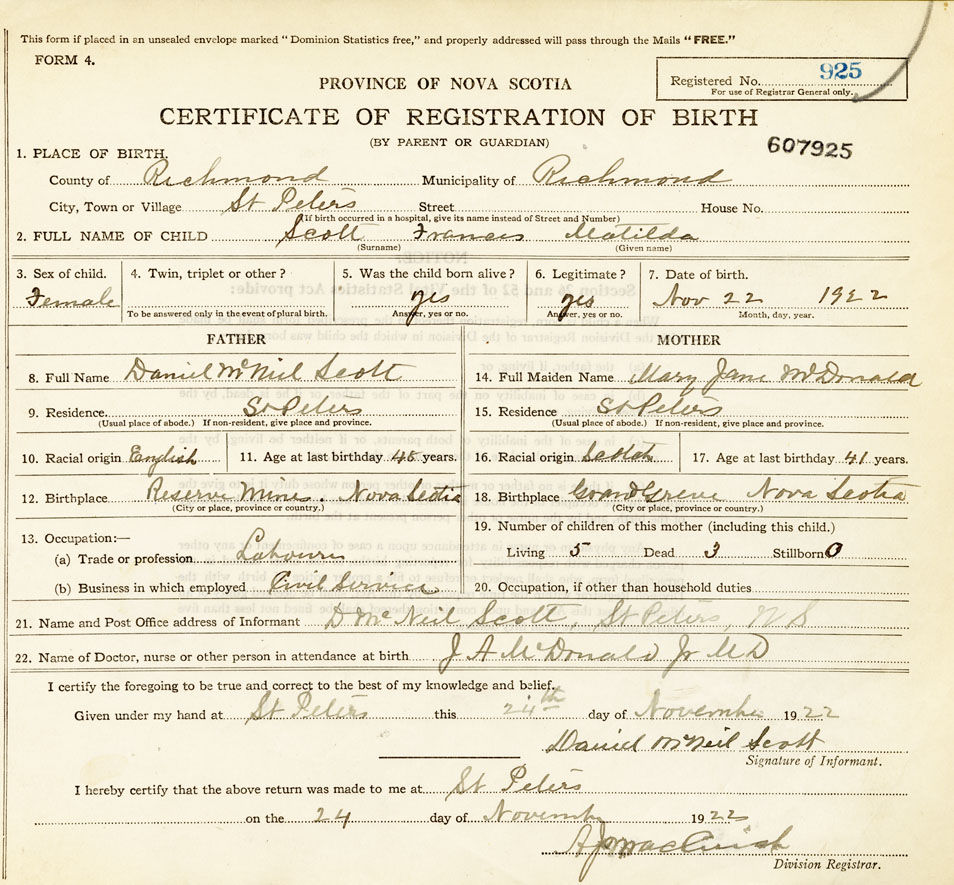 Nova Scotia Archives — https://archives.novascotia.ca/vital-statistics/birth/?ID=421412
