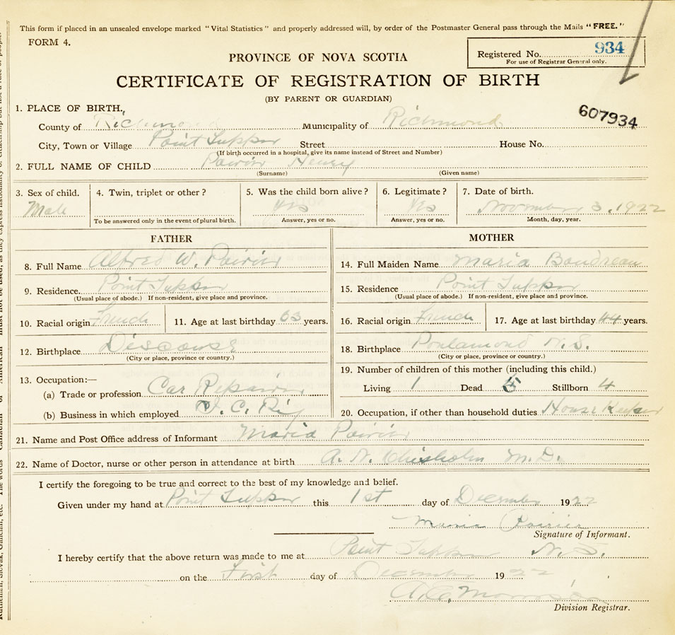 Nova Scotia Archives — https://archives.novascotia.ca/vital-statistics/birth/?ID=421421